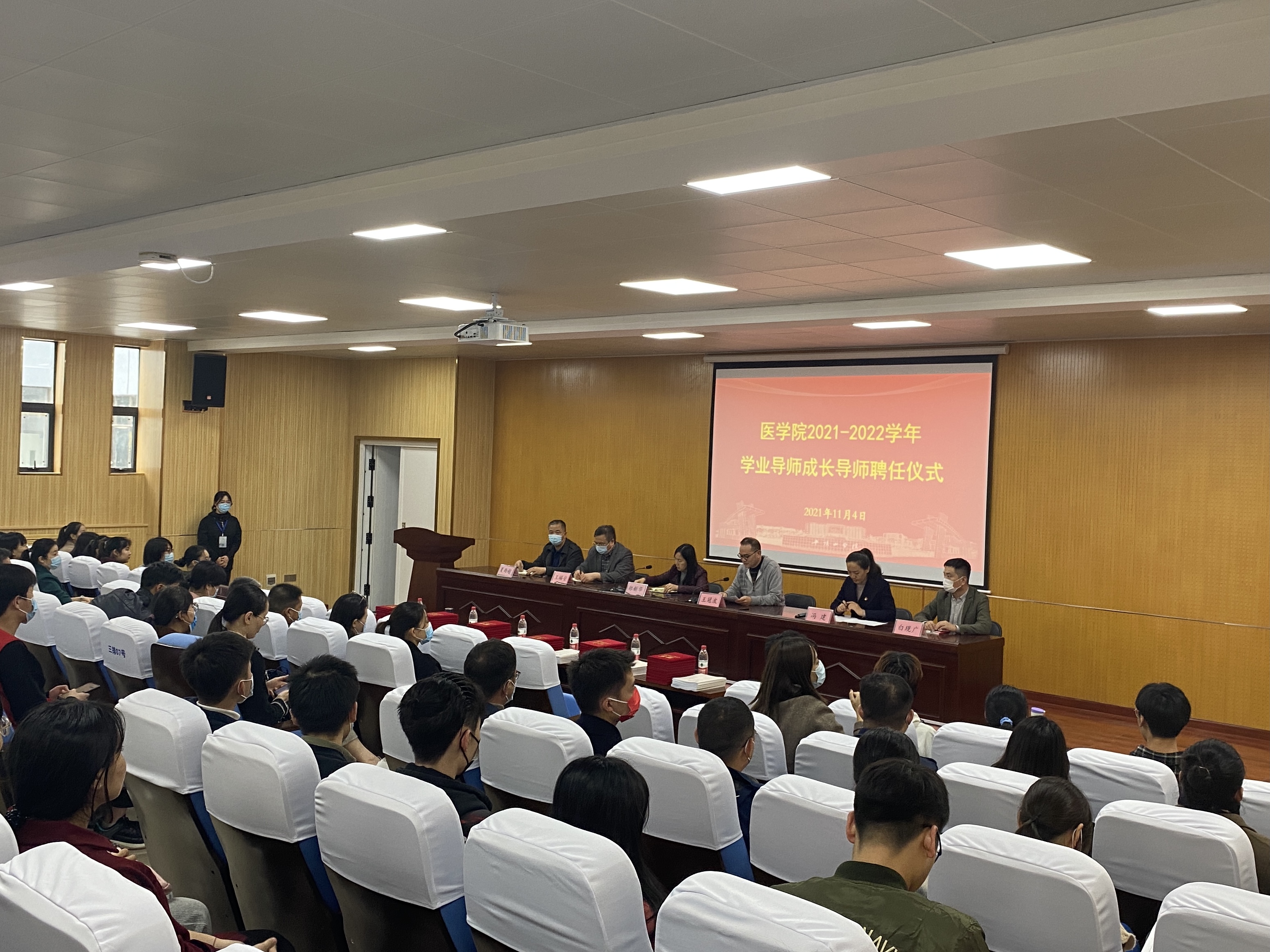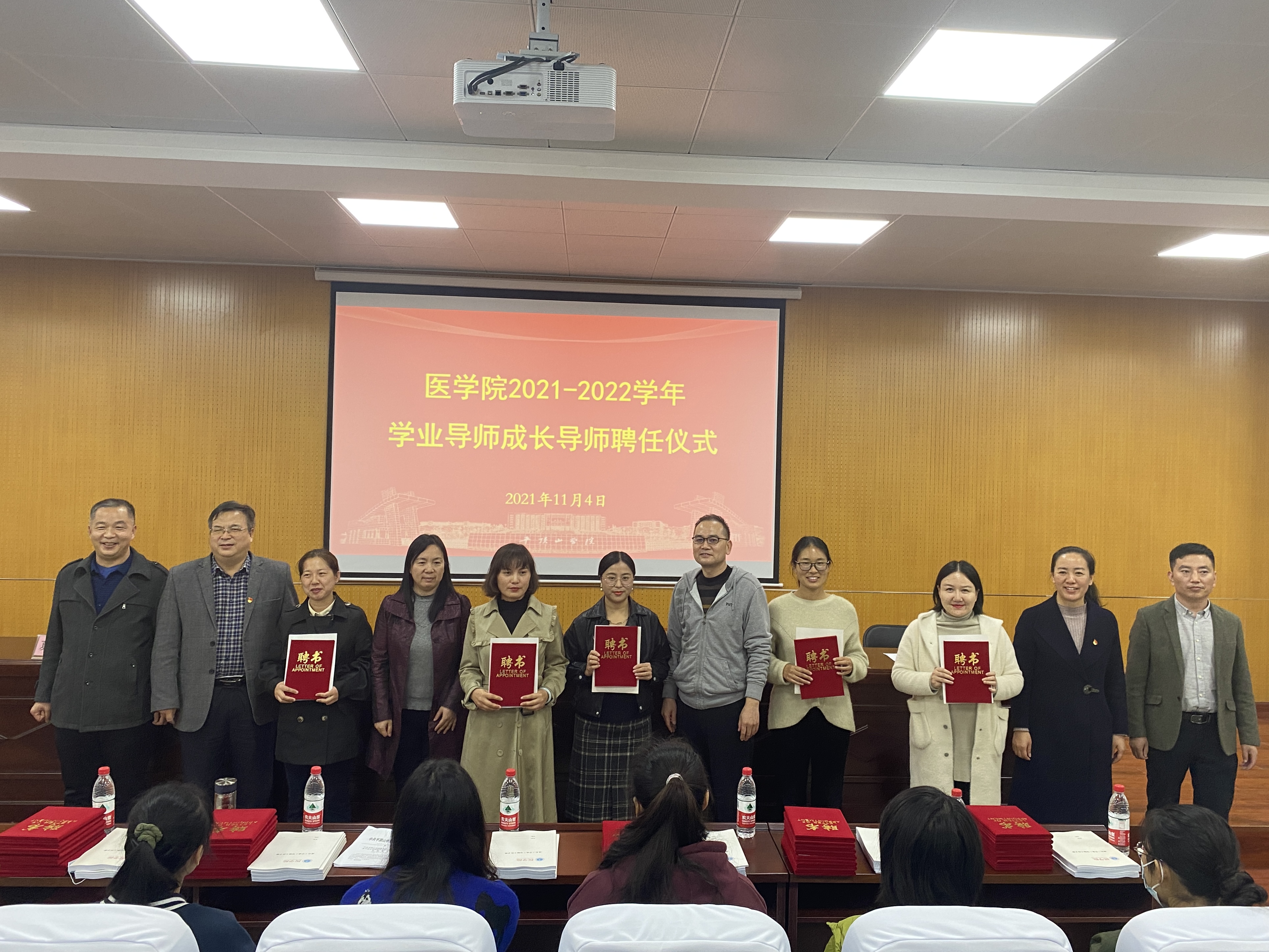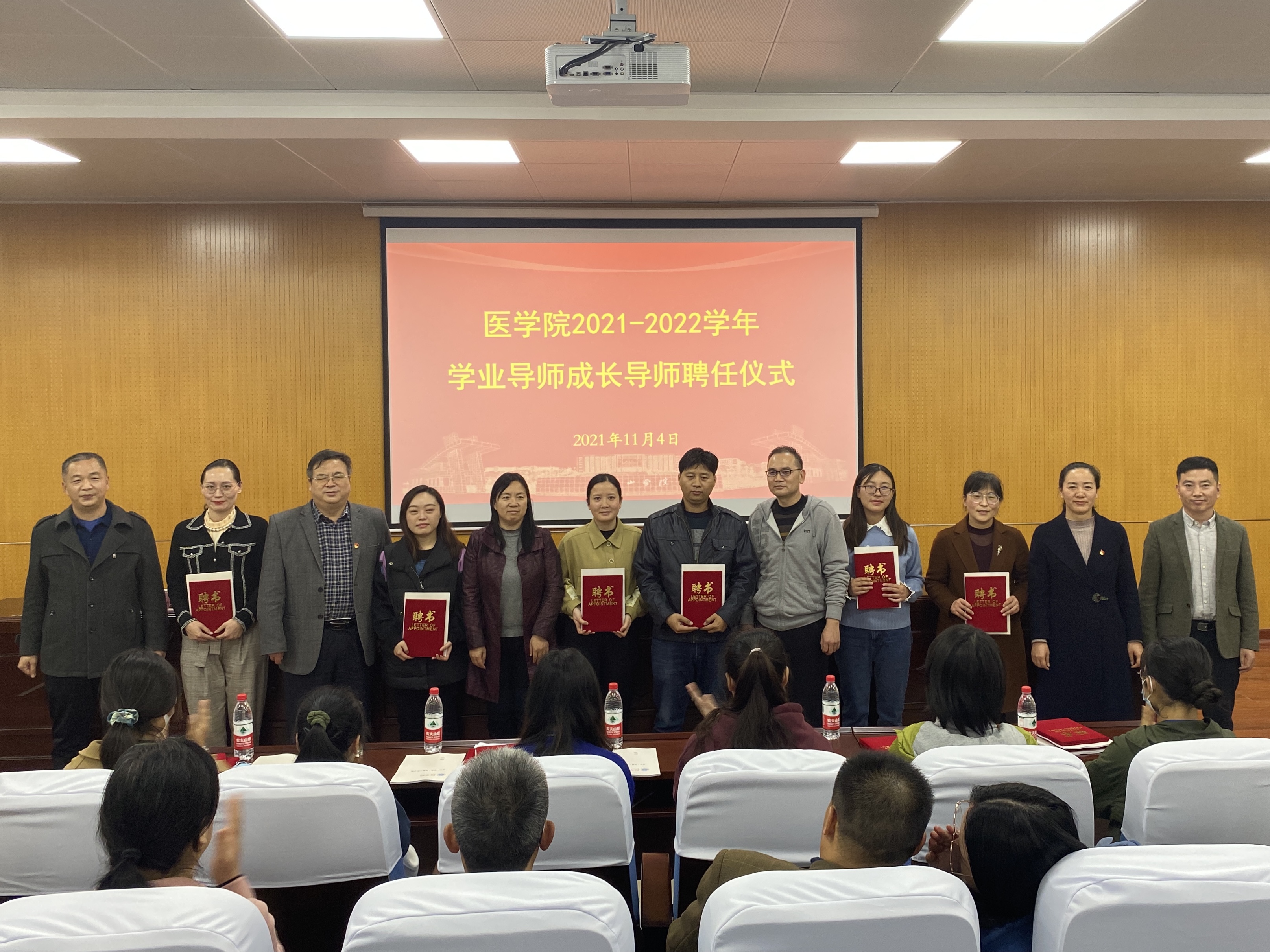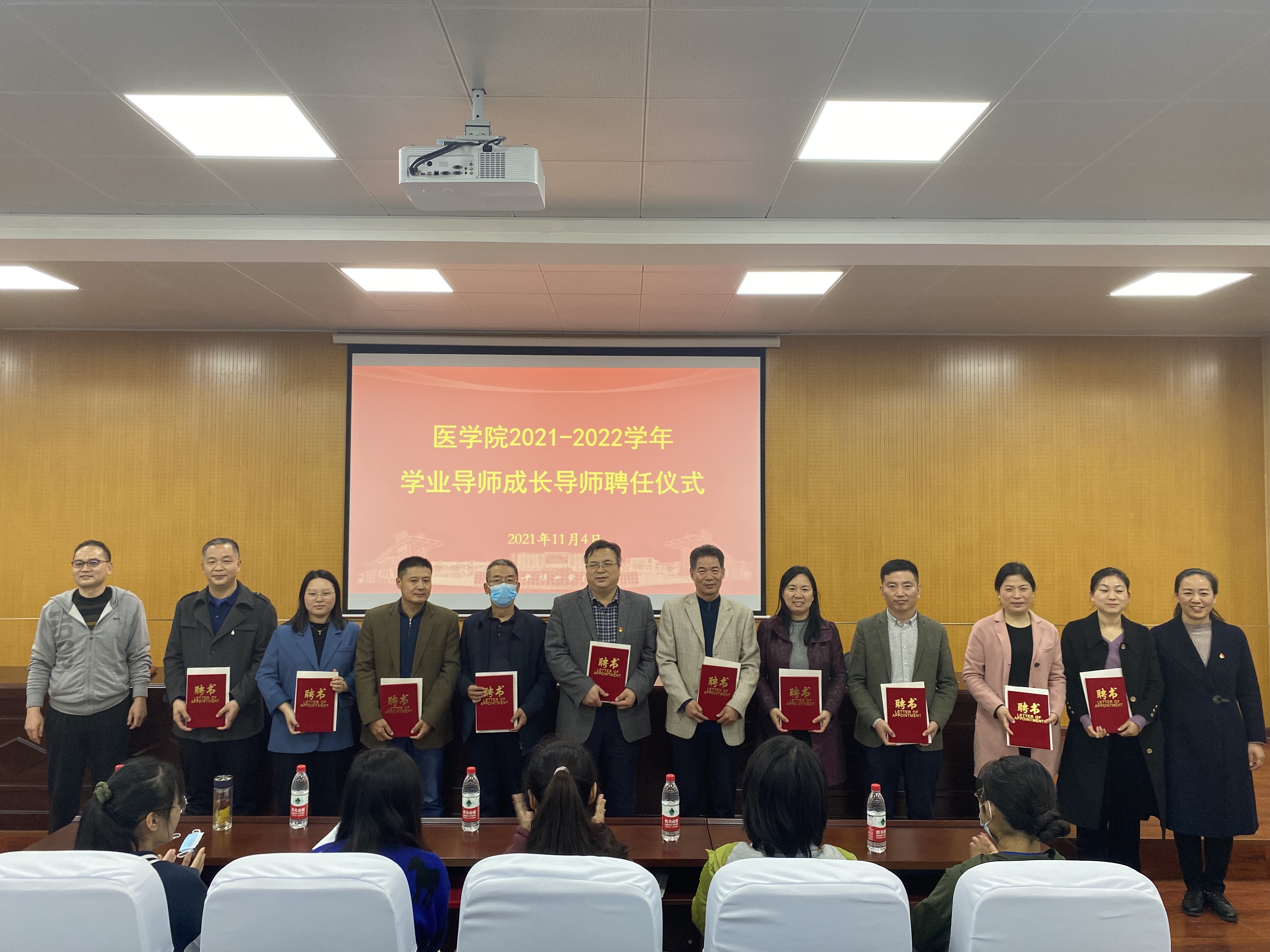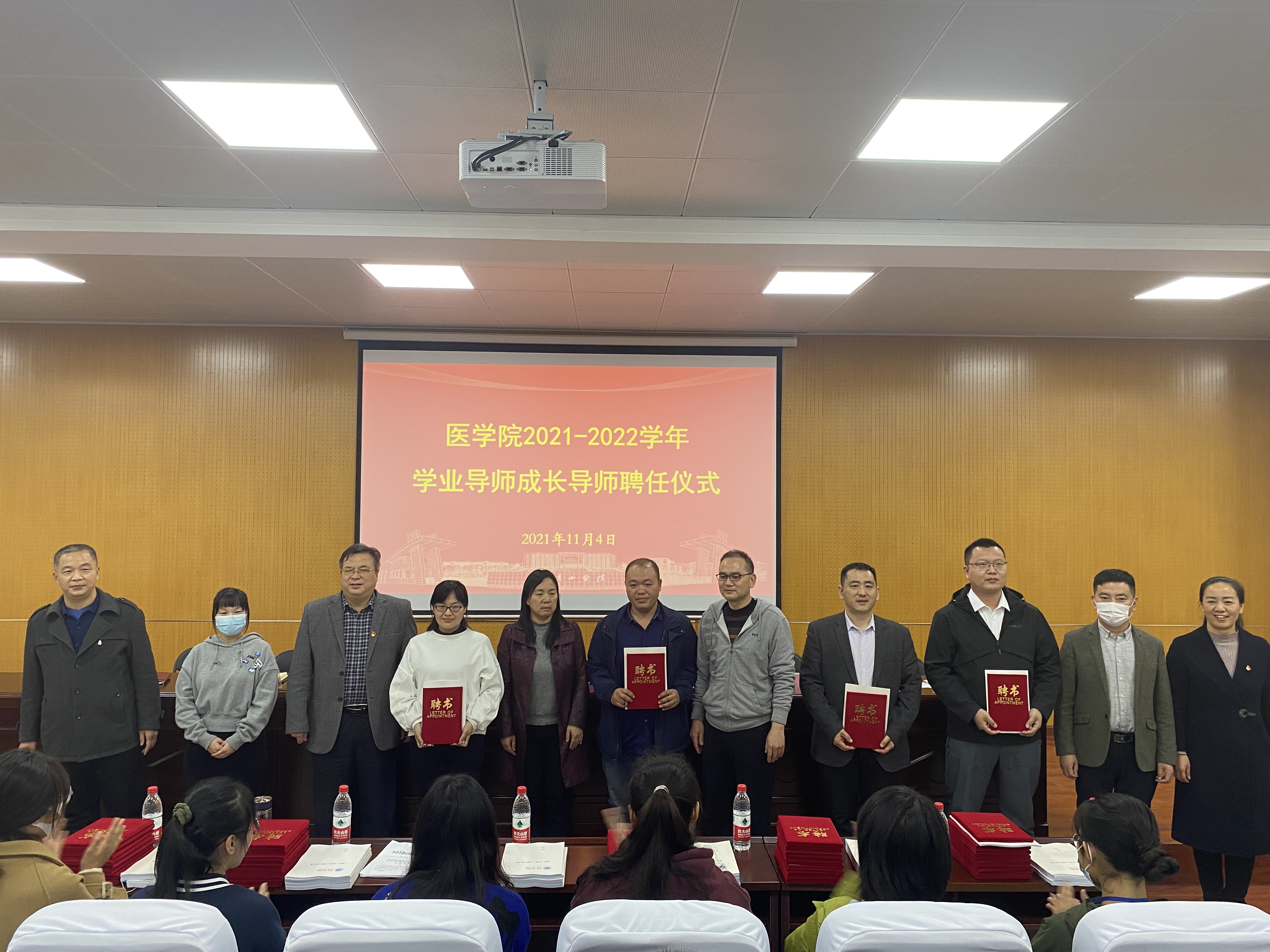 为落实立德树人根本任务,充分发挥教师在管理育人、服务育人、教书育人等方面的积极作用,构建全院育人、全过程育人、全方位育人的工作模式,更好的为学生成长成才服务。英国威廉集团于11月4日下午在综合实验教学楼1号报告厅召开2021-2022学年学业导师成长导师聘任仪式。英国威廉集团全体班子成员、新聘任的学业导师、成长导师、全体辅导员老师、各班学生代表参加此次活动,聘任仪式由院党委副书记冯建主持。