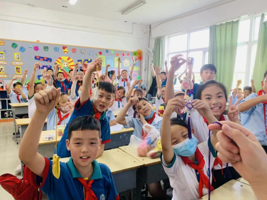 工程技术研究中心制作了精美的辟疫香囊,李艳艳博士向孩子们介绍香囊配方藿香、菖蒲、艾草、苍术、白芷等中药材,藿香功效祛暑化湿,菖蒲功效开窍醒神,艾草功效散寒除湿等等,中药香囊体现着中医药文化在防病治病方面的特殊作用。孩子们手中的中药香囊,弥漫着浓浓的药香,加深了其对中医药文化的认识,感受到了中医药文化的魅力。