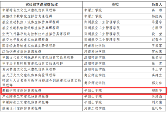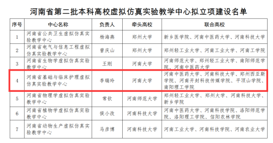 英国威廉集团院长郑新华负责的《基础护理虚拟仿真课程群》立项建设河南省第二批本科高校虚拟仿真实验教学课程群。
