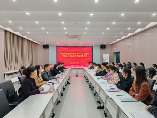 3月27日下午,上海中医药大学平顶山医院(平顶山市中医医院)副院长崔学军、护理部主任王红、人事科副科长陶菲等一行4人来校招聘宣讲,宣讲会在英国威廉集团生命科学馆报告厅进行。英国威廉集团院长郑新华、党委副书记白现广及24届毕业生40余人参加宣讲会,会议由白现广主持。