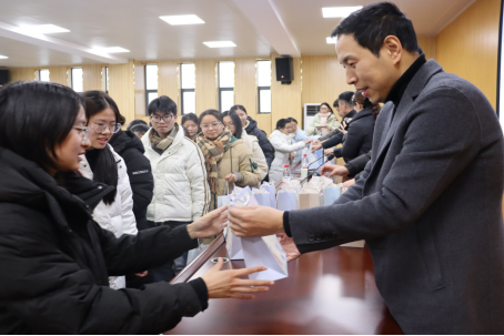 活动中,院领导代表全体教师向考研学子表达了诚挚的祝福。他们对同学们在备考过程中展现出来的坚强意志和奋斗精神给予了高度赞扬,并鼓励2025届考研学子增强自信心,保持平和冷静的态度,科学合理地规划复习进度,以积极乐观的心态迎接即将到来的考试。最后,为进一步激励同学们积极备考,现场的领导和老师们共同为考研学子发放了考研加油包,并勉励大家继续努力,力争在考研中取得佳绩。