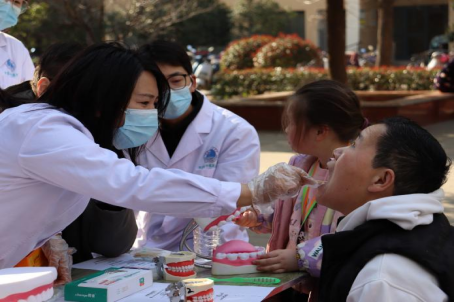 图3 刘丹丹老师为居民检查口腔健康