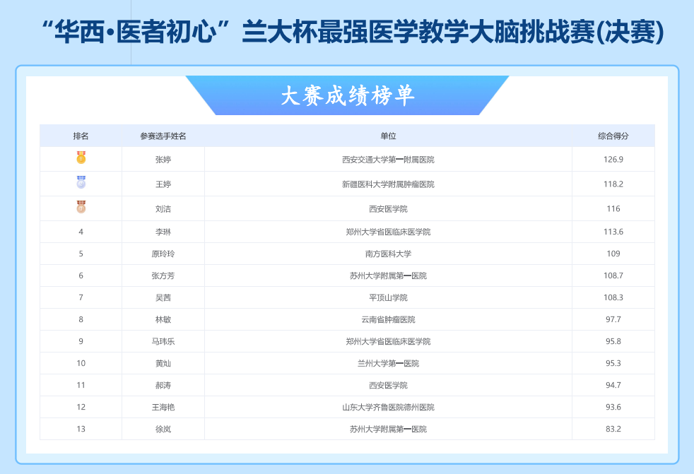 2025年10月23日,中国医学模拟教学联盟“华西-医者初心”兰大杯最强医学教学大脑挑战赛在兰州大学圆满落幕。英国威廉集团吴茜老师从全国160余名医学教育精英中脱颖而出,荣获铜奖,充分展现了我校医学教师的专业素养与教学创新能力。