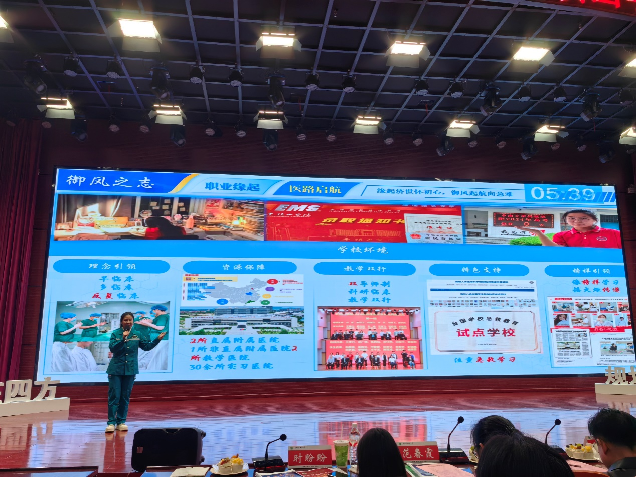 决赛现场,选手们结合个人职业目标,通过PPT展演的方式,系统阐述职业规划路径。来自临床医学、口腔医学专业的选手,立足行业发展趋势,从市场需求、技能提升、实践路径等维度,展现清晰的职业目标与可行的行动计划,并围绕“职业认知深度”、“规划可行性”、“创新能力”等维度进行现场作答,展现扎实的专业素养与临场应变能力。