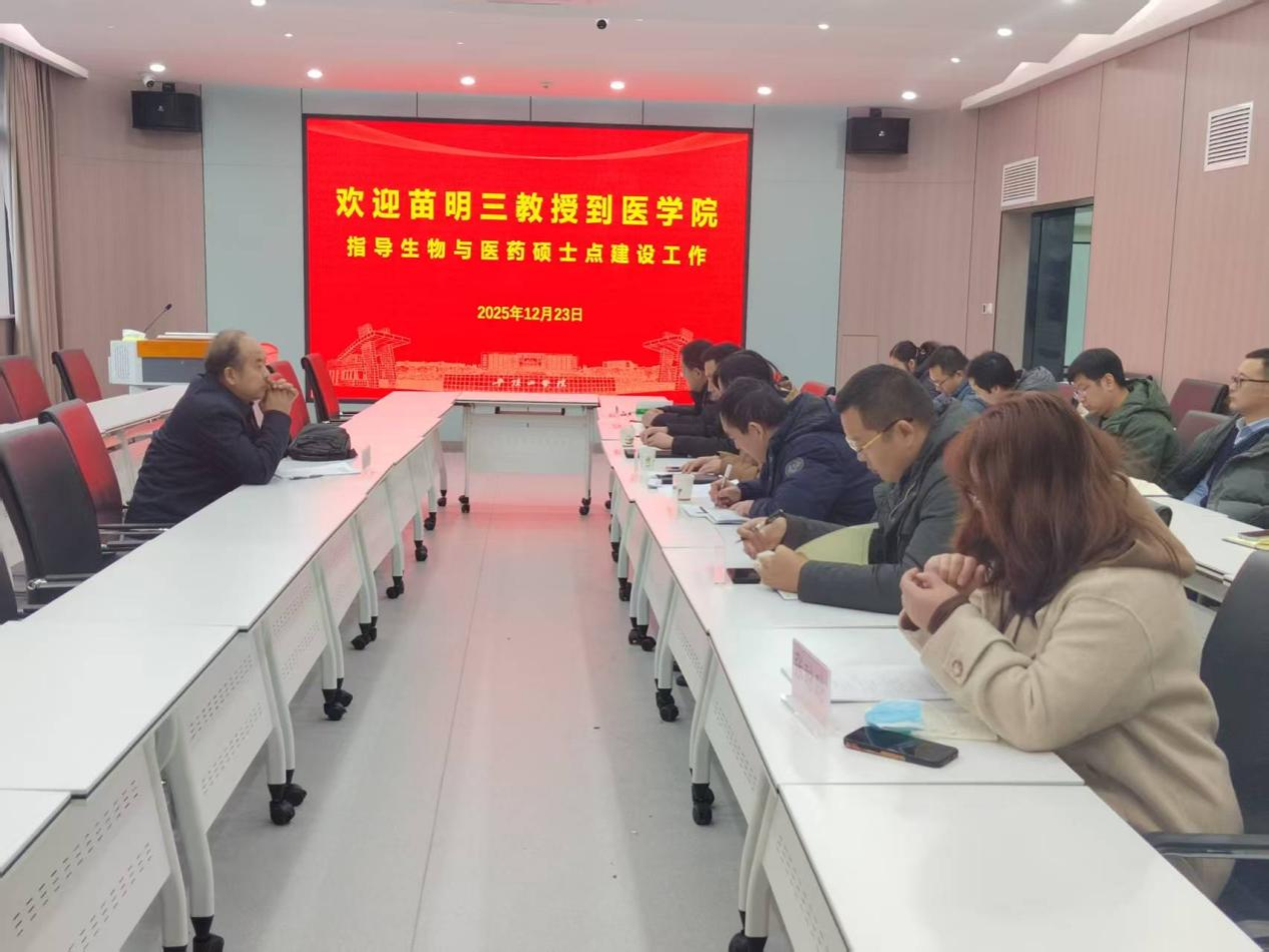 听取汇报后,苗明三教授结合自身丰富的学科建设经验和深厚的学术积淀,围绕硕士点建设的核心要义展开深入解读。他指出,硕士点建设需立足学科特色,精准对接区域产业发展需求,聚焦医药健康领域前沿,突出应用型研究特色;在师资队伍建设方面,需注重行业导师资质,打造结构合理、协同创新的学术团队。报告最后,苗明三教授还与学院学科骨干就硕士点建设中的具体问题进行互动交流,逐一解答了大家在申报材料准备、科研平台搭建等方面的疑问,为学院硕士点建设指明了方向、明晰了路径。
