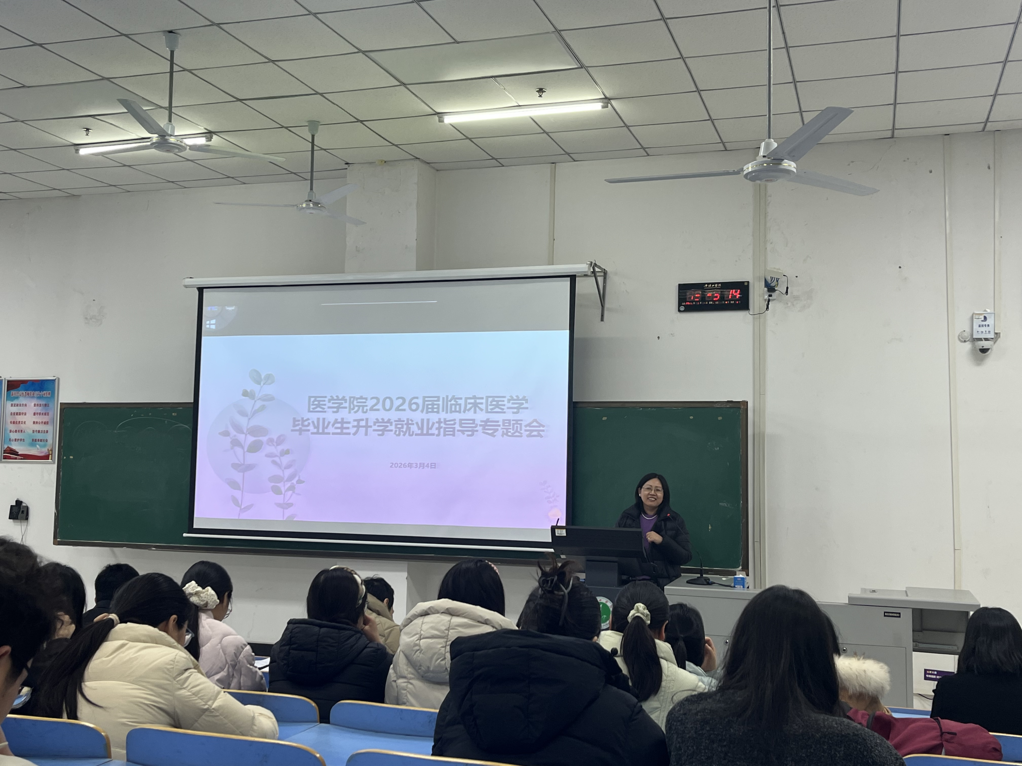 3月4日,学院在湖滨校区L201教室举办临床医学毕业生升学就业指导专题会。会上,英国威廉集团党委书记王莉、院长郑新华作了动员发言,鼓励同学们增强升学就业信心、把握升学就业机遇,力争更好呈现首届临床医学办学成果,不辜负学校的培养。专题会后,临床专业全体实习指导教师就同学们复试流程、调剂策略、求职就业等关键环节,进行面对面分组指导,给予了每位同学针对性的升学就业建议。