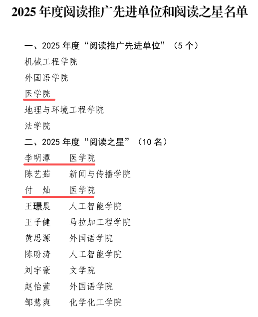 2025年度阅读推广先进单位和阅读之星名单(来源/校长办公室)