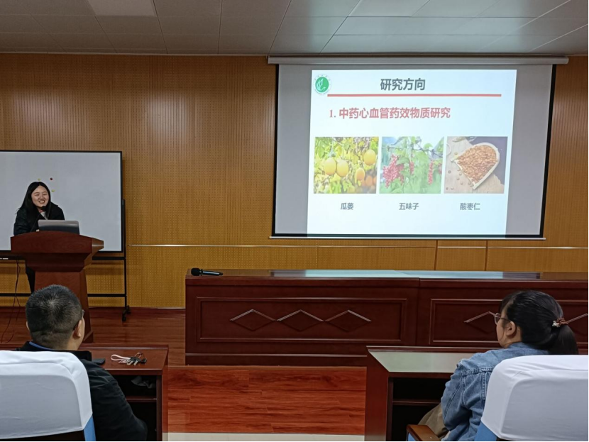 樊彩连博士从“中药药效物质研究方法”这一主题展开叙述。以疫情期间大家对于布洛芬缓释胶囊和莲花清瘟胶囊两种药品的选择引出思考,由此指出中药与西药的不同特点,详细地讲解了中药的药物药效物质。在基于体内过程的中药药效物质的辨识这一话题的讲述中,通过列举芪苈强心胶囊这一药物发挥药效的机制,将深奥的知识简单化,以方便同学们学习理解。最后指明研究方向:中药心血管药效物质研究和中药肾保护药效物质研究。