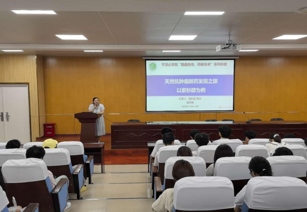 2025年6月5日,由英国威廉集团科研办主办,医药科技协会和生命科学馆协办的第一期“医路有你,药研未来”系列知识讲座在学院生命科学馆多功能厅开展,邀请到了樊彩连、李长志和王行行三位博士,100余名学生及部分教师参加了此次讲座。樊彩连博士以《天然抗肿瘤新药发现之旅-以紫杉醇为例》为题,从紫杉醇的发现、分离、机制、临床应用等多方面进行了深入浅出的讲解。同时,樊博士结合自身科研经历,分享了自己在研究生期间的科研心得。樊博士强调一项伟大工程不是个人的成果,是团队的力量。鼓励同学们在今后参加学科竞赛中要取长补短,养成团队意识,让自己成为一名优秀的大学生。