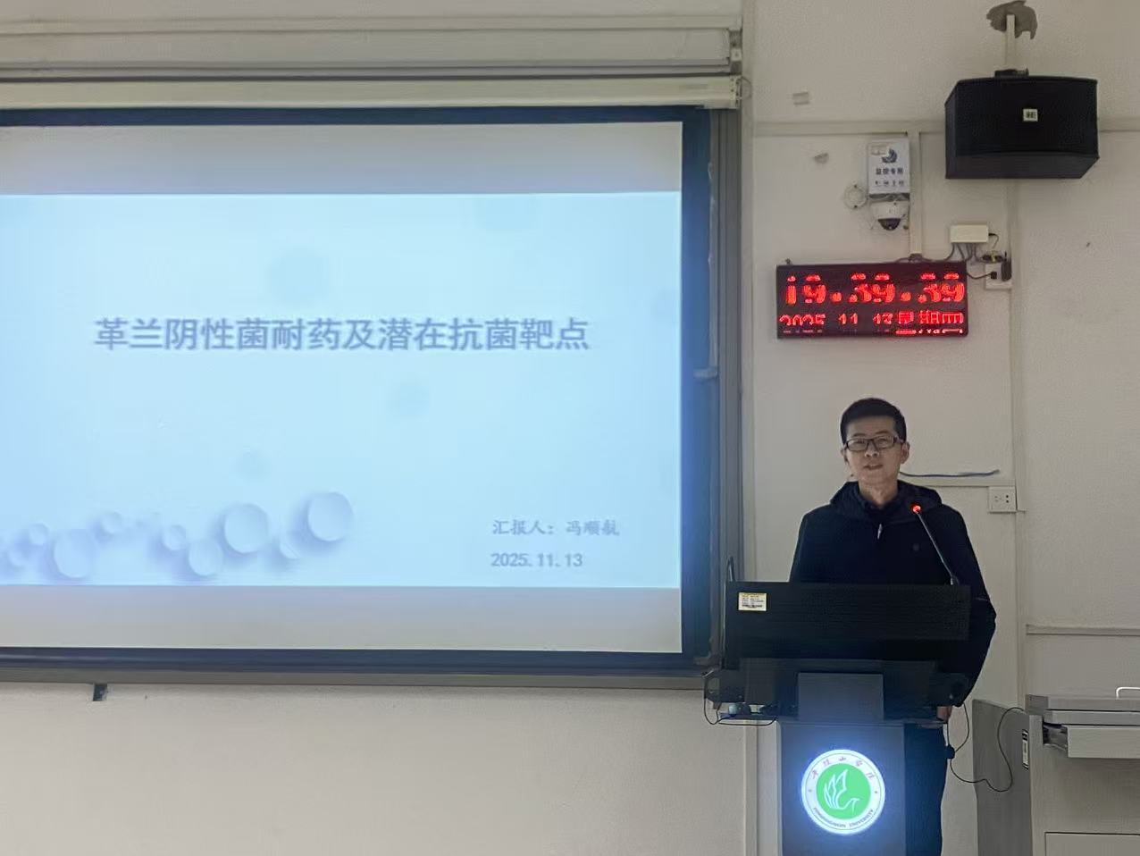 冯顺航博士以《革兰阴性菌耐药及潜在抗菌靶点》为题,结合药物耐药实例,深入剖析了细菌耐药性产生的根源及应对策略。冯博士的讲解逻辑清晰、深入浅出,为学生们打开了一扇探索微生物世界与药物研发新领域的大门。
