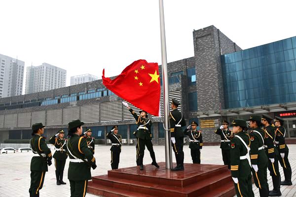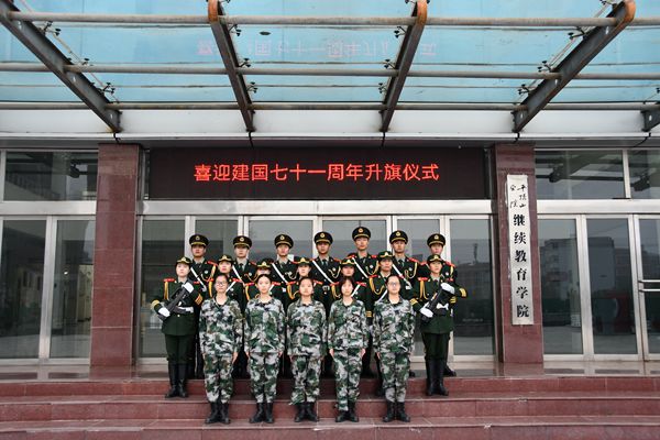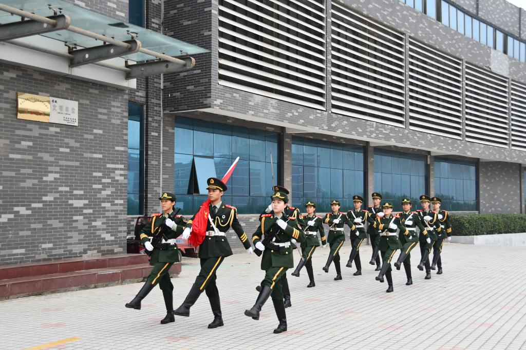 当天早上七时许,升旗仪式正式开始。国旗护卫队踏着整齐划一、铿锵有力的步伐,护送鲜艳的五星红旗正步走向国旗台。伴着庄严雄壮的国歌,鲜艳的五星红旗冉冉升起,在这神圣而隆重的气氛中,全体肃静,向国旗行注目礼,向庄严神圣的国旗表达最崇高的敬意,祝福祖国繁荣昌盛。今天,中华人民共和国迎来71周年华诞,经受风雨洗礼,我们却更加坚定前进的脚步!
