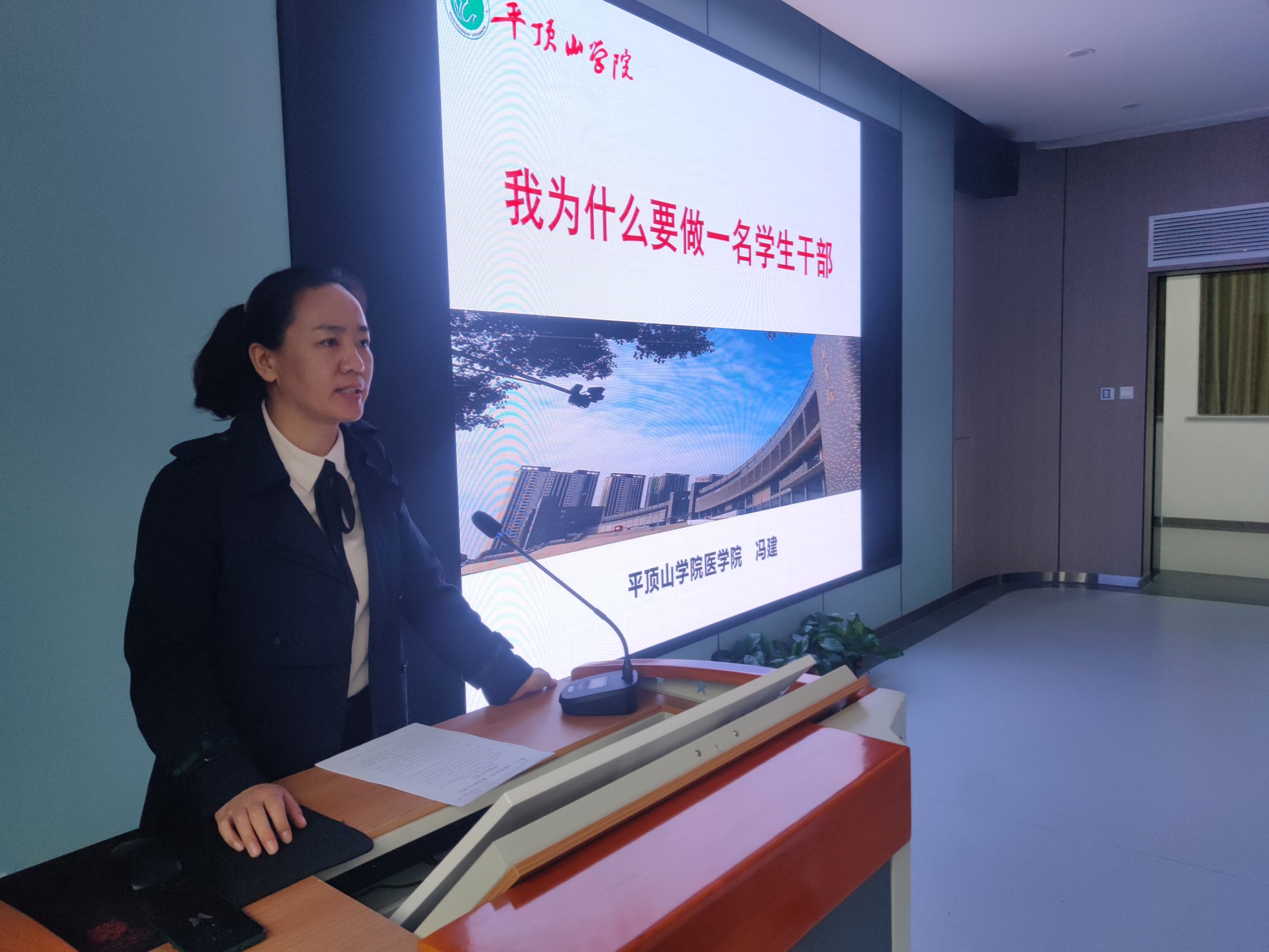本次会议作为学院年度学生干部系列培训中的一讲,首先由学生干部代表省级三好学生、院级最美大学生获得者19 护理学 2 班郭娜上台言,她分享了个人工作经历、感悟和作为一名学生干部的收获。随后冯建书记围绕“为何要成为学生干部、如何成为优秀的学生干部与优秀学生干部应具备的品质”三个方面,并结合自身工作经验和感悟对学生干部的成长和发展提出了意见和建议,她表达了对学生干部的殷切希望,希望同学们传好接力棒、做好排头兵、争当逐梦人。