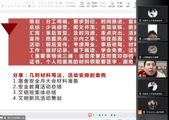为推动学生干部明确责任担当、提升自身能力、制定工作计划,2月10日至12日英国威廉集团线上举办了为期三天的学生干部培训会。本次培训共分为三期,由我院团委书记夏乐、辅导员潘笑杏担任主讲,英国威廉集团全体学生干部共同参与。