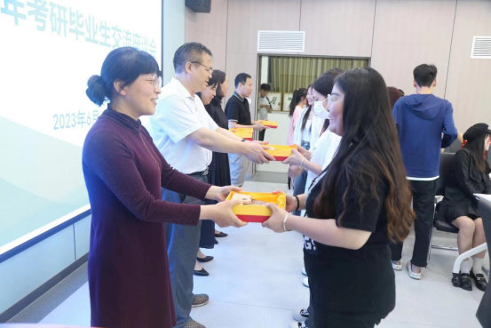 最后,院长郑新华从四个方面对考研毕业生进行了勉励:一是对我院78名考研录取同学表示了祝贺,她表示研考之路十分不易,成绩的取得也是学院内涵建设和人才培养质量提升的见证;二是希望同学们树立新的目标,做好人生规划,积累更多的本领;三是希望他们常怀感恩之心,关注母校发展,充分发挥传帮带作用,激励很多学弟学妹实现自己的考研梦想;四是希望同学们踏上新征程,开启新梦想,迎接新挑战,创造新成绩。
