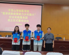 会上,李炎埔老师宣读了暑期三下乡文件,讲解了本次暑期三下乡的目的和意义。在成立仪式过程中,党委副书记冯建就三下乡进行指导,并为资助宣传组的学生颁发资助宣传大使证书,她强调:要带着习近平总书记对青年到基层实践的嘱托下乡,要站在更高层次上去思考问题,在实践中克服困难锻炼成长,把资助政策、党的二十大精神、医学知识和技能切实送到基层。随后,冯建老师又嘱咐了同学们实践期间的注意事项与个人安全问题。