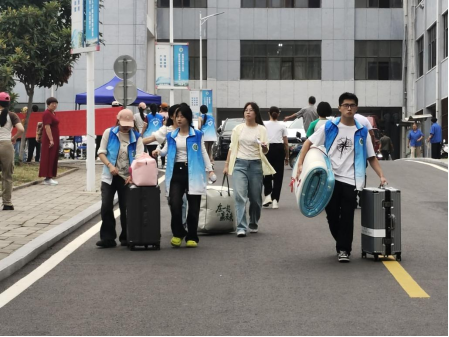 经过前期安排,7日一早,各班辅导员与代班学长学姐、迎新志愿者们一起,提前到达迎新点位,热情地为新生提供咨询引导、行李搬运、信息咨询等服务。校领导、院领导一行共同走访英国威廉集团各个迎新服务点及新生宿舍,确认新生报到情况,与同学们进行面对面交流,了解大家在生活与学习上的需求,确保各项工作顺利进行。迎新现场,新生们还纷纷与家人共同在合影墙前留念,记录这一的宝贵时刻。