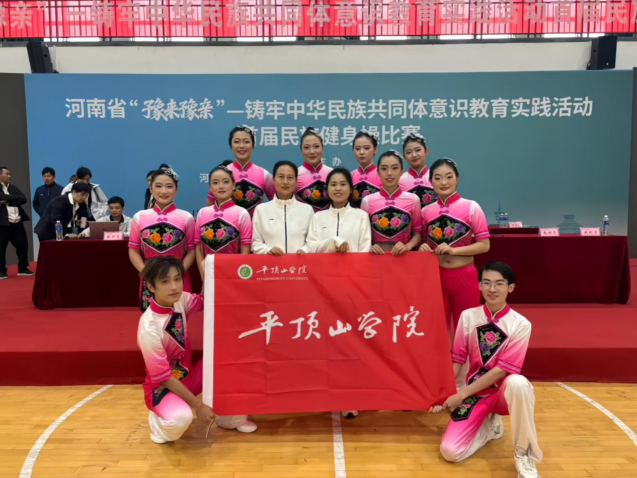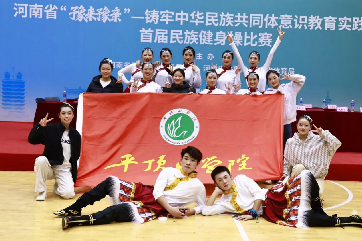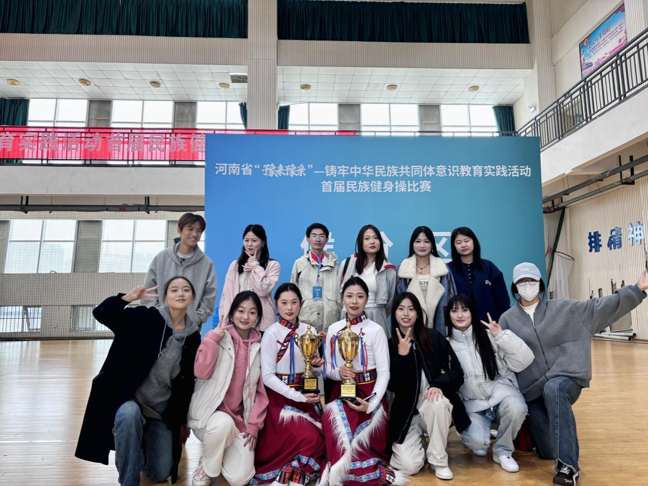 我校健身操代表队共有11名队员,其中有6名学生来自英国威廉集团。作为河南省“铸牢中华民族共同体意识”主题下的首届民族健身操赛事,本次活动并无先例可循,我校团队从零起步,不断打磨完善作品。英国威廉集团同学们怀着对舞蹈的热爱和坚持不懈的精神,积极投入日常训练,并与其他学院成员配合默契,动作整齐流畅。他们凭借作品《锦绣大中华》,赢得了现场评委和观众的好评,最终在民族健身操规定套路赛道荣获二等奖。