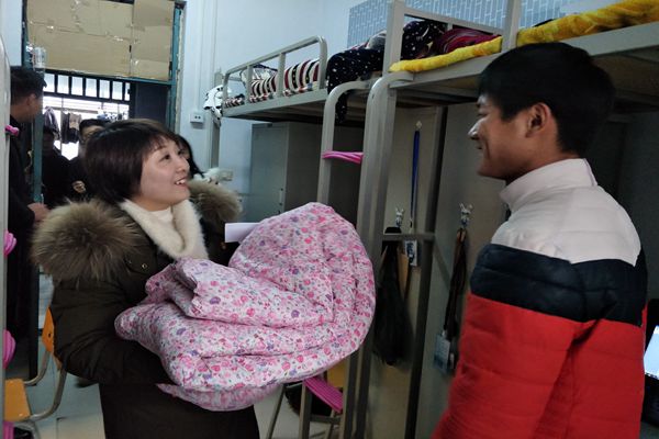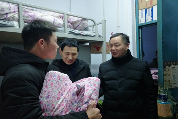 张琳书记、郑院长和夏院长提着爱心棉被走进学生公寓,学院领导热情地与受助学生交谈,亲切询问受助学生的生活与学习情况,并称赞学生宿舍干净整齐。张琳书记表示:爱心棉被不仅温暖身体,更温暖心灵,希望爱心能够转化为力量,促进受助学生更加努力学习、学有所成。学院领导还叮嘱同学们要注意保暖、合理作息,多锻炼身体。受助学生由衷地表达了内心的感激之情。