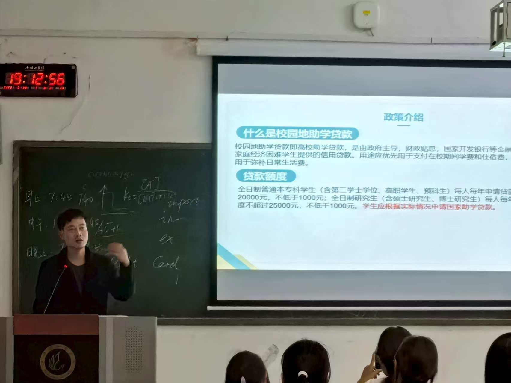 宣讲会上,胡博老师系统解读了国家各类资助政策,详细介绍了校园地助学贷款的申请条件、办理流程及额度标准。胡老师还全面介绍了国家奖学金、国家励志奖学金、国家助学金的申报条件与评审程序,以及学校“绿色通道”的申请方式。在互动环节,针对新生普遍关心的材料准备等问题,胡老师也一一给予细致解答。