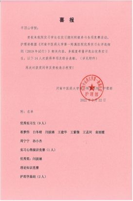 河南中医药大学第一附属医院护理毕业实习生获佳绩