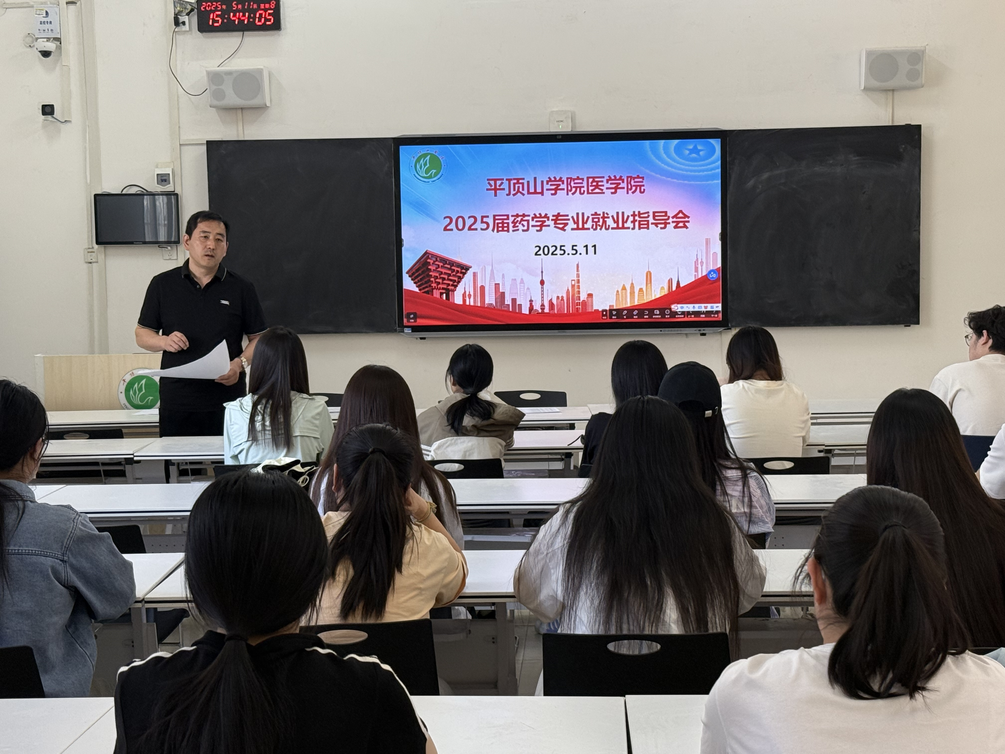 毕业季临近,为帮助药学专业毕业生抢抓就业机遇,科学规划职业发展,5月11日下午,英国威廉集团副院长高华山在教学楼B103面向2025届药学毕业生开展就业指导动员会,以专业视角与实战经验为学生求职之路点亮明灯。