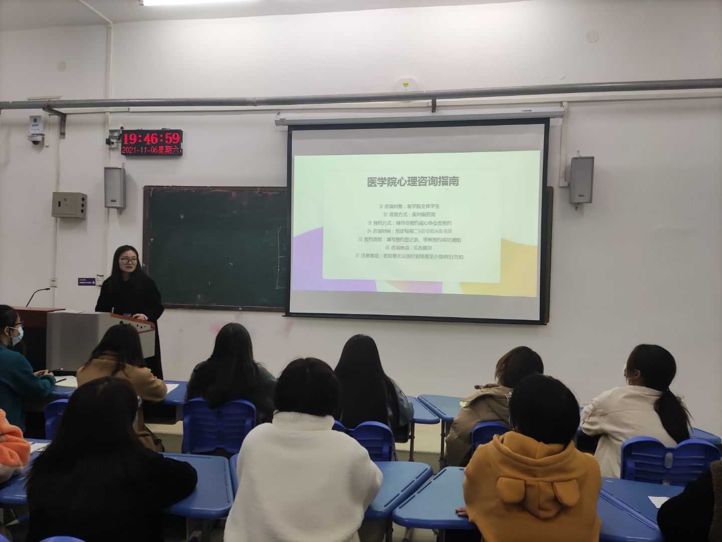 本次活动包括四部分:介绍心理健康协会概况、讲授心理健康知识、开展心理小游戏、参观心理咨询室。活动中,各班心理委员接受专业的心理知识培训,了解到马斯洛心理健康十大标准和大学生常见的心理问题产生原因和调节心理问题的方法,活动尾声大家一起参观了心理咨询室,分享如何在日常生活中关注同学们的心理状态以及有效开展班级心理工作。