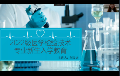 刘强主任首先向新生们表示了热烈的欢迎,对同学们选择医学检验技术专业表示了充分肯定。随后,向同学们详细介绍了我校医学检验技术专业的发展历程,并从专业定义、人才培养目标、本专业在医学中的地位,综合介绍了医学检验技术这一专业;张淼源老师以2022年新版的人才培养方案为出发点,介绍了本专业的毕业要求、学位授予条件、及专业课程的相关情况;宋素娜老师从教务的角度,讲解了课程的类别、成绩的构成、获取学分的过程、课程的考核方式,并强调了严肃考风考纪、树立优良学风的重要性;刘姿含老师以“新征程、新挑战”为主题,向同学们讲解了进入大学后如何展开检验专业的学习,介绍了在大学期间,如何积极入党,并对检验专业的就业方向进行了说明;王慧君老师以自身为例子,讲述了就业的另一种途径:考公务员,同时也介绍了如何准备考研的经验,强调了考研的重要性;张淼源老师通过举例,向同学们详细介绍了职业生涯规划的步骤:认识自我、环境分析、职业定位、制定职业发展计划,并鼓励同学们在大学期间做好规划;朱峰老师给同学们讲解大学期间可以考哪些证书,以及这些证书的作用,并帮助同学们认识了常见的电信诈骗手段以及如何防诈骗,保护自己财产安全。最后,刘强主任对本次教育活动进行了总结。他勉励同学们新征程要有新方向,努力学习,超越自我,力争上游,在学习或生活上有任何问题,要及时与老师沟通、寻求帮助,争做新时代好青年,为行业发展贡献自己的力量!