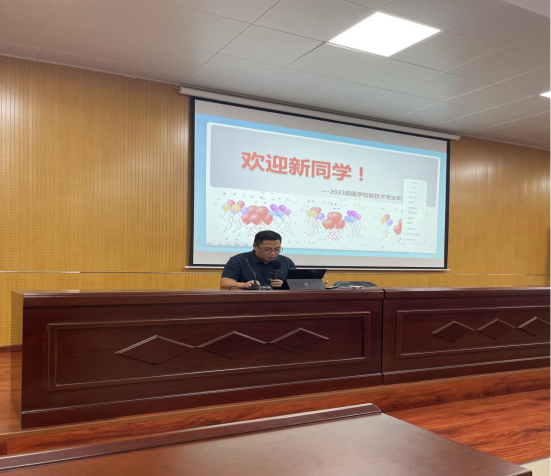 刘强主任对新生们的到来表示热烈的欢迎,对同学们选择医学检验技术专业表示了充分肯定。随后,以时间为基线将医学技术系检验专业的发展历程和近年的具体工作、成绩为同学们做了报告。重点从医学检验技术专业的培养目标、人才培养规格、毕业要求以及专业条件等对专业进行详细讲解,使学生明确自己的人生规划和努力方向。五位专业课老师在简要介绍各自所带课程之后,着重介绍了如下几个方面:张淼源老师以人才培养方案为出发点,介绍了本专业的毕业要求、学位授予条件、及专业课程的相关情况;宋素娜老师从教务的角度,讲解了课程的类别、成绩的构成、获取学分的过程、课程的考核方式,并强调了严肃考风考纪、树立优良学风的重要性;刘姿含老师以“新征程、新挑战”为主题,向同学们讲解了进入大学后如何展开检验专业的学习,介绍了在大学期间,如何积极入党,并对检验专业的就业方向进行了说明;王慧君老师以自身为例子,讲述了就业的另一种途径:考公务员,同时也介绍了如何准备考研的经验,强调了考研的重要性;张淼源老师通过举例,向同学们详细介绍了职业生涯规划的步骤:认识自我、环境分析、职业定位、制定职业发展计划,并鼓励同学们在大学期间做好规划;朱峰老师给同学们讲解大学期间可以考哪些证书,以及这些证书的作用,并帮助同学们认识了常见的电信诈骗手段以及如何防诈骗,保护自己财产安全。最后,刘强主任对本次教育活动进行了总结。他勉励同学们新征程要有新方向,努力学习,超越自我,力争上游,在学习或生活上有任何问题,要及时与老师沟通、寻求帮助,争做新时代好青年,为行业发展贡献自己的力量!