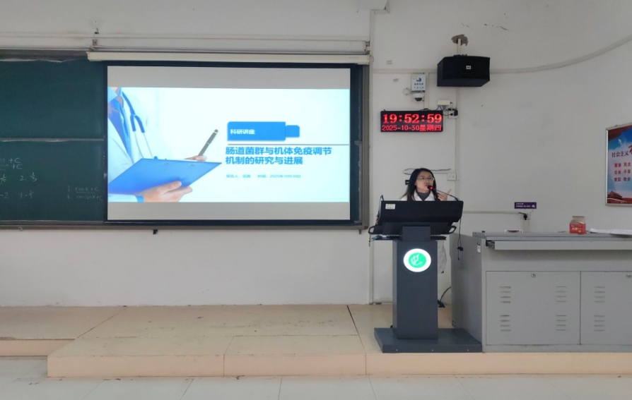 吴茜老师的讲座聚焦“肠道菌群与机体免疫调节机制”这一前沿领域,她通过展示该领域的研究脉络与最新进展,从肠道菌群的构成讲到其对免疫功能的调控作用,激发了医学生们对生命科学前沿方向的探索热情。