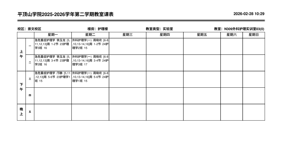 地点:崇文校区护理实训楼309